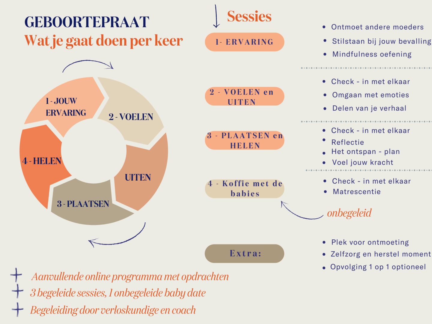 Met deze groepsbegeleiding ga jij als volgt jouw bevallingservaring verwerken.
