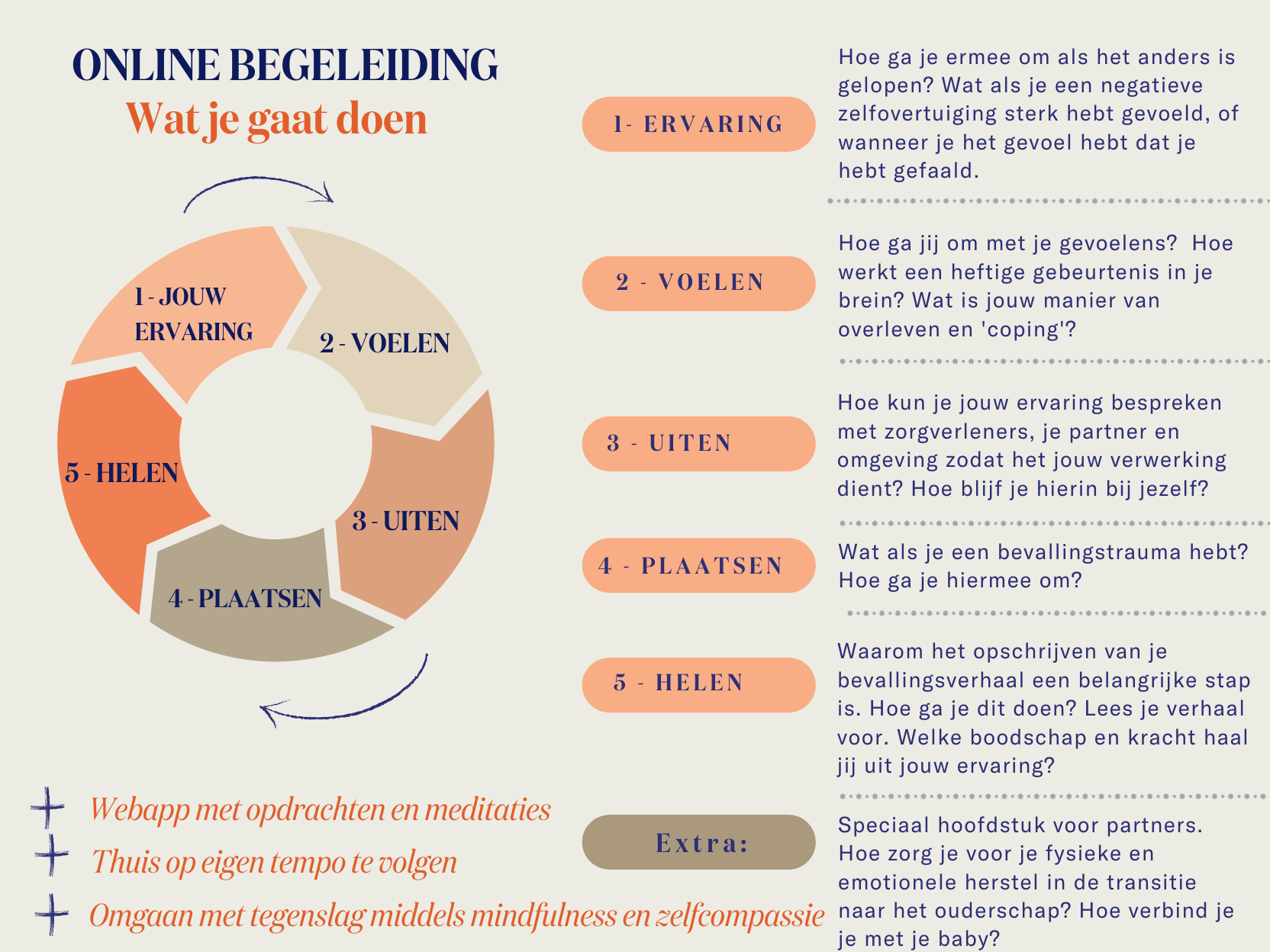 Met deze online begeleiding ga jij als volgt jouw bevallingservaring verwerken.